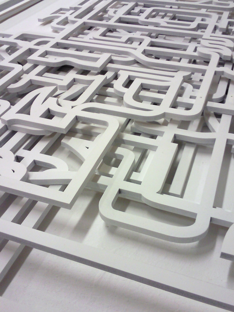 Two and a half hours of parking lot patterns (Close-up). 36″ x 24″ x 2.5″. Medium-density fiberboard, painted with white enamel.